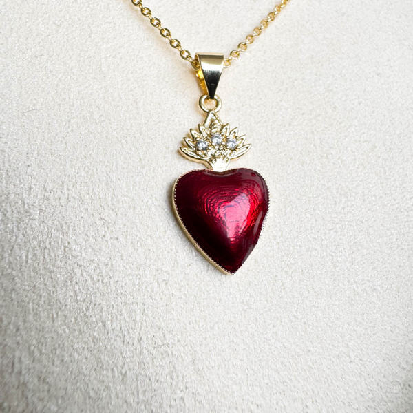 1 Collar Corazón de Fuego en acero inoxidable 316L duradero con baño en oro 14k y dije en cobre galvanizado con baño en oro 18k