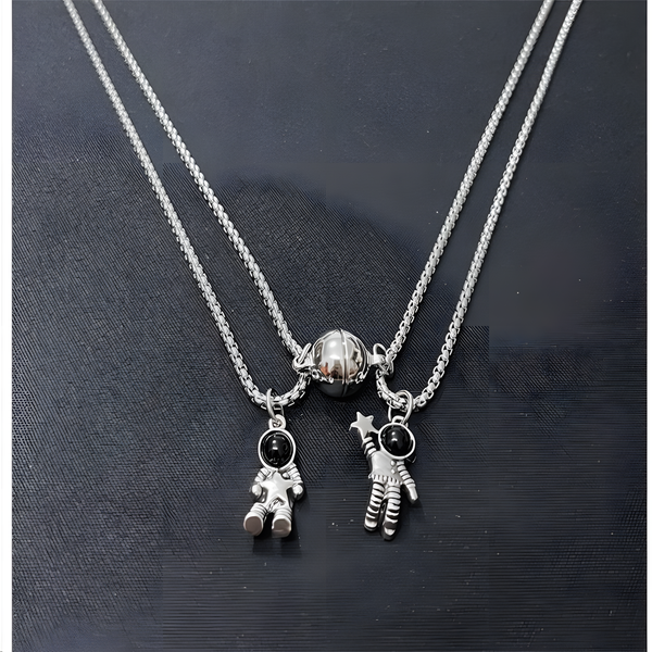 2 Collares de astronautas para pareja magnéticos en acero inoxidable 316L duradero y dije en cobre galvanizado